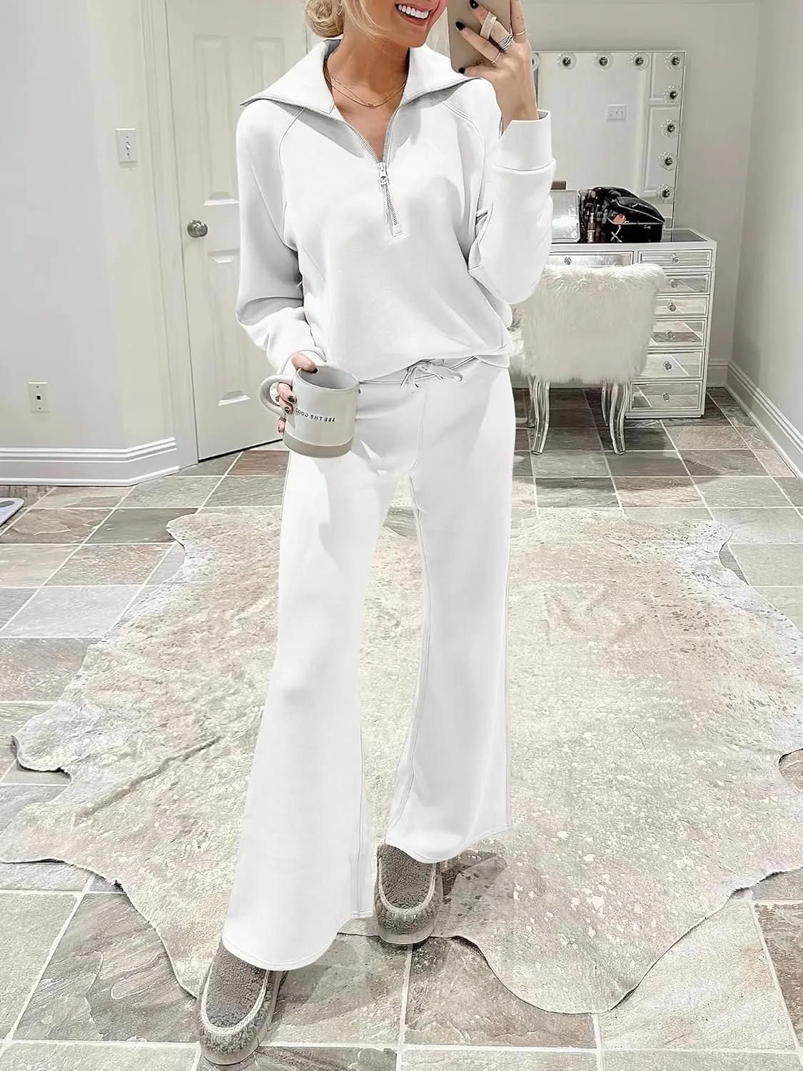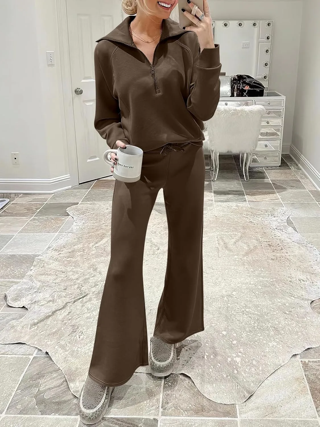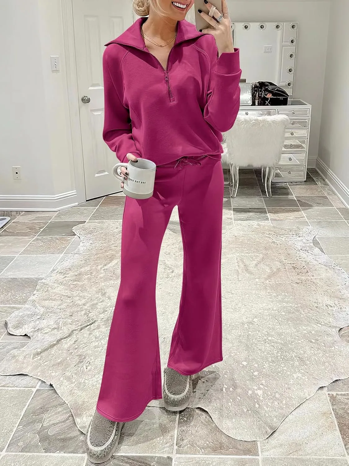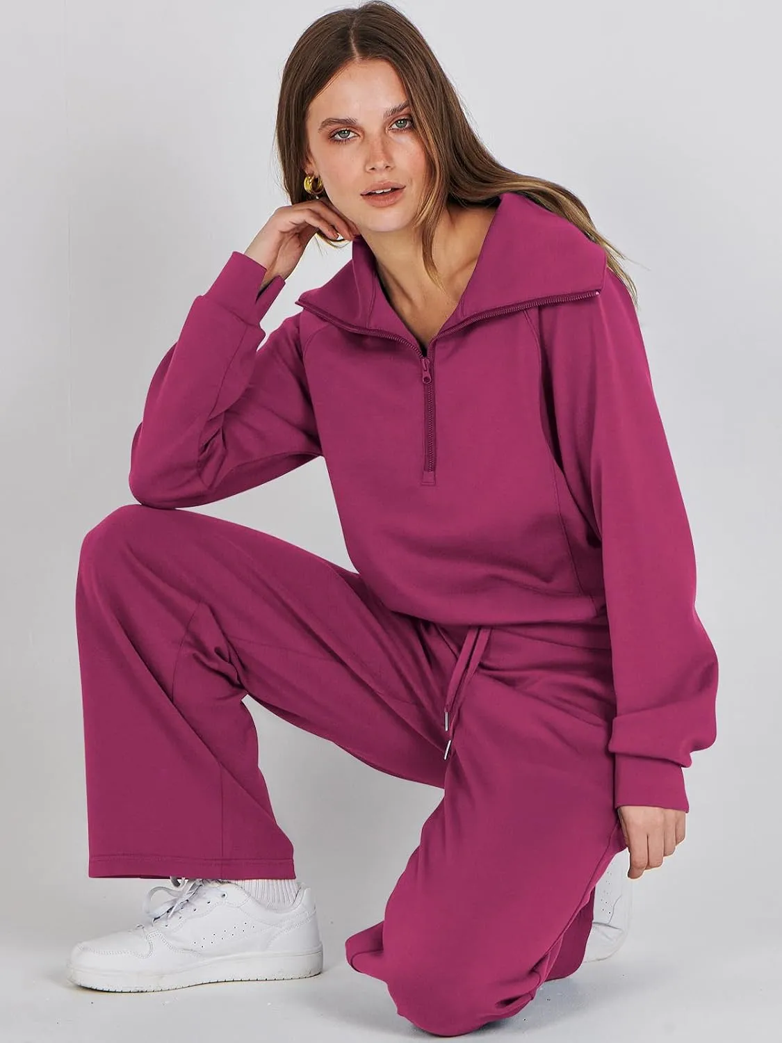 - The slouchy, oversized lounge set for women is designed to provide maximum comfort and relaxation. The solid color design is timeless and versatile, making it easy to mix and match with other items in your wardrobe, perfect for relaxing at home or outdoor casual errands in style. This comfortable outfit set will keep you company in every moment you need.
