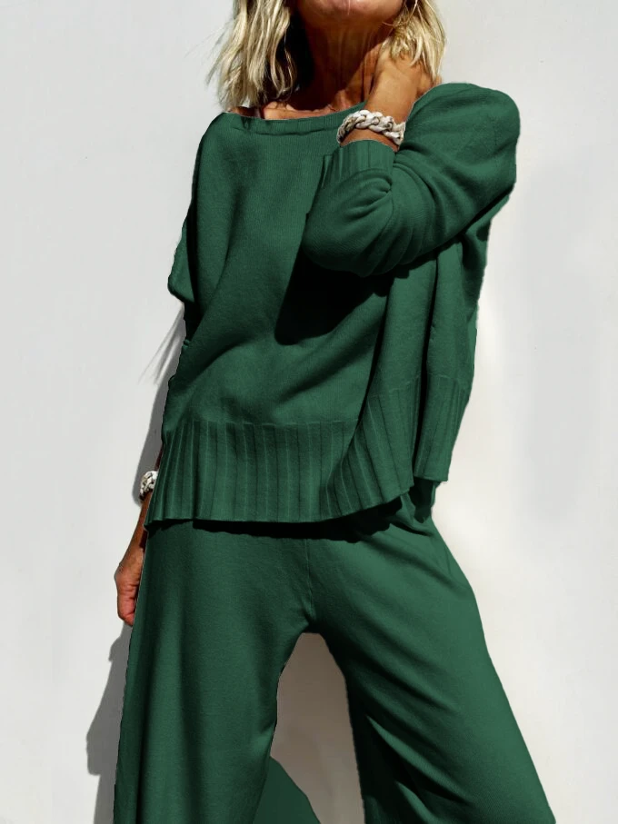 Soft cashmere fabric meets elegant design in this sweater suit, delivering luxurious warmth and effortless chic for all your casual occasions. 🌟