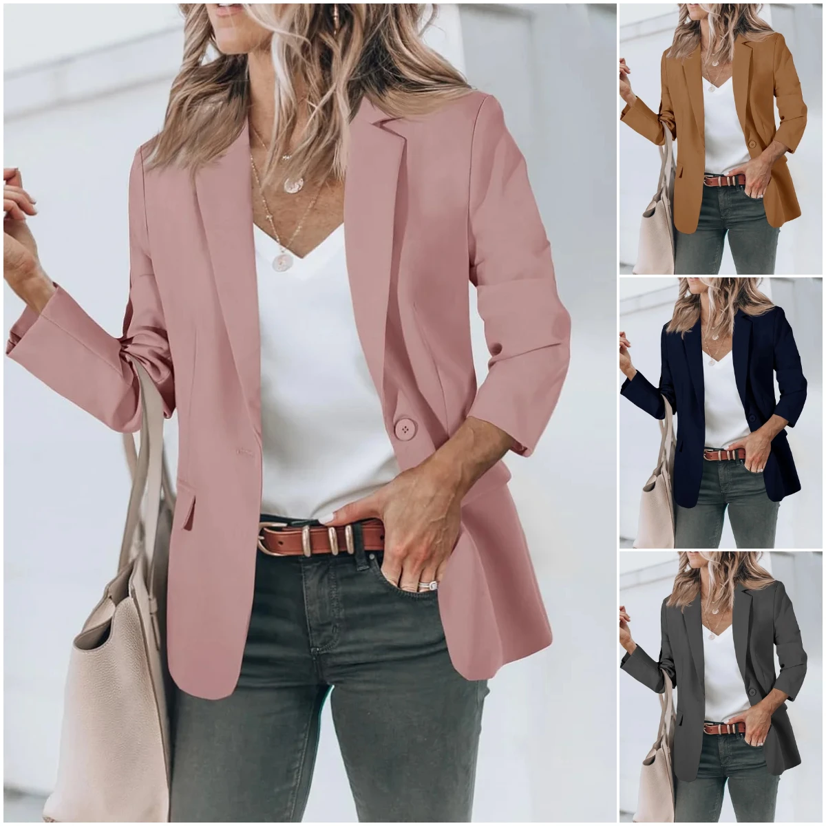 Women’s Casual Open Front Long Sleeve Work Office Jacket Blazer